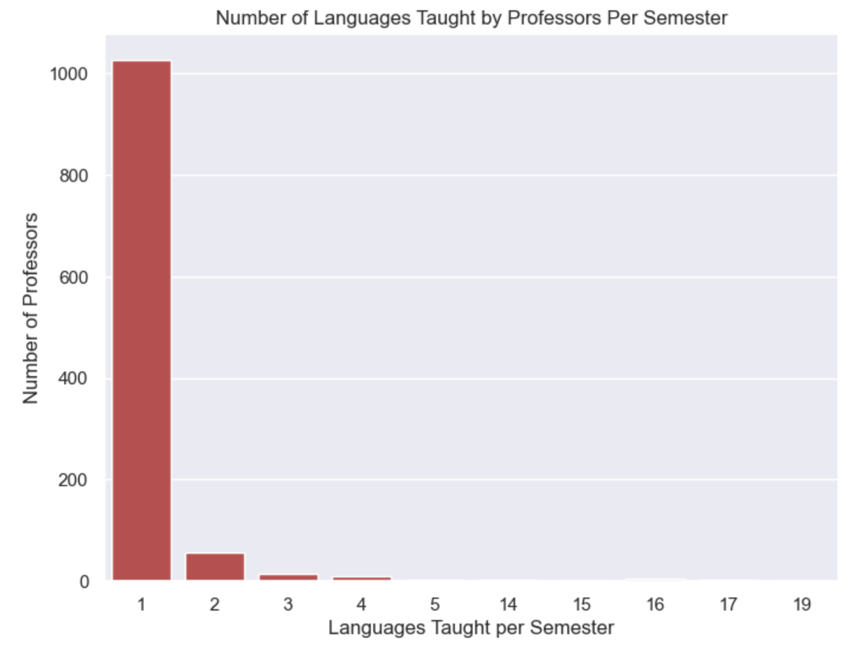 Figure 7: How many professors teach a certain number of languages per semester.